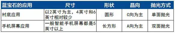 首先,我们来比较一下不同应用的蓝宝石尺寸和性能上的区别。